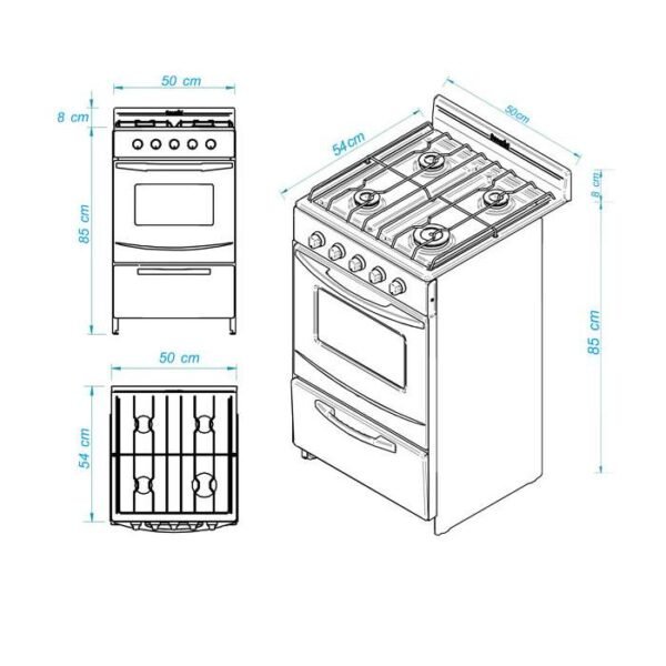 - Quemadores de aluminio con tapa de acero esmaltada.